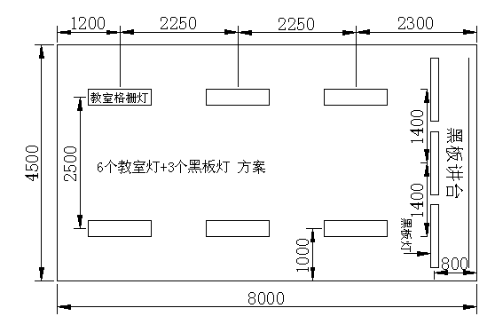 首先我們在出圖之前一定要現場勘查一下現場的數據,比如教室的長寬高及一些基本的要素,知道了現場數據我們就先畫一下基礎的布燈圖