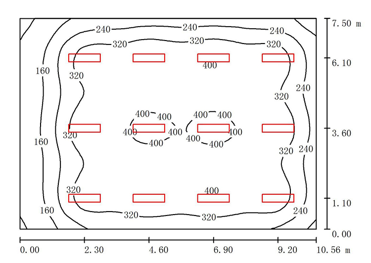 這個圖就是要知道我們布燈出來的燈符不符合標準,教室燈布出來之后照度能不能達到300以的LX,黑板燈能不能達到500以上LX